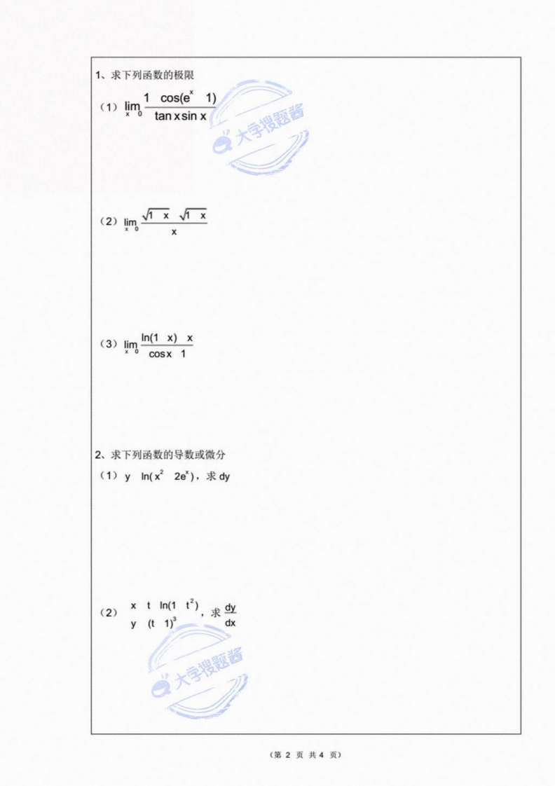 北京大学《高等数学》2021-2022学年第一学期期末试卷A猴哥6个月前更新关注私信0.24MB4页01.2W+4540北京大学《高等数学》2021-2022学年第一学期期末试卷A此内容为付费资源,请付费后查看10积分年度会员免费月享会员免费登录购买付费资源 第1页 / 共4页 第2页 / 共4页 第3页 / 共4页 第4页 / 共4页 已完成全部阅读,共4页 © 版权声明文章版权归作者所有,未经允许请勿转载。THE END《北京大学》期中期末历年真题期末试卷 喜欢就支持一下吧点赞4540赞赏 分享QQ空间微博QQ好友海报分享复制链接收藏