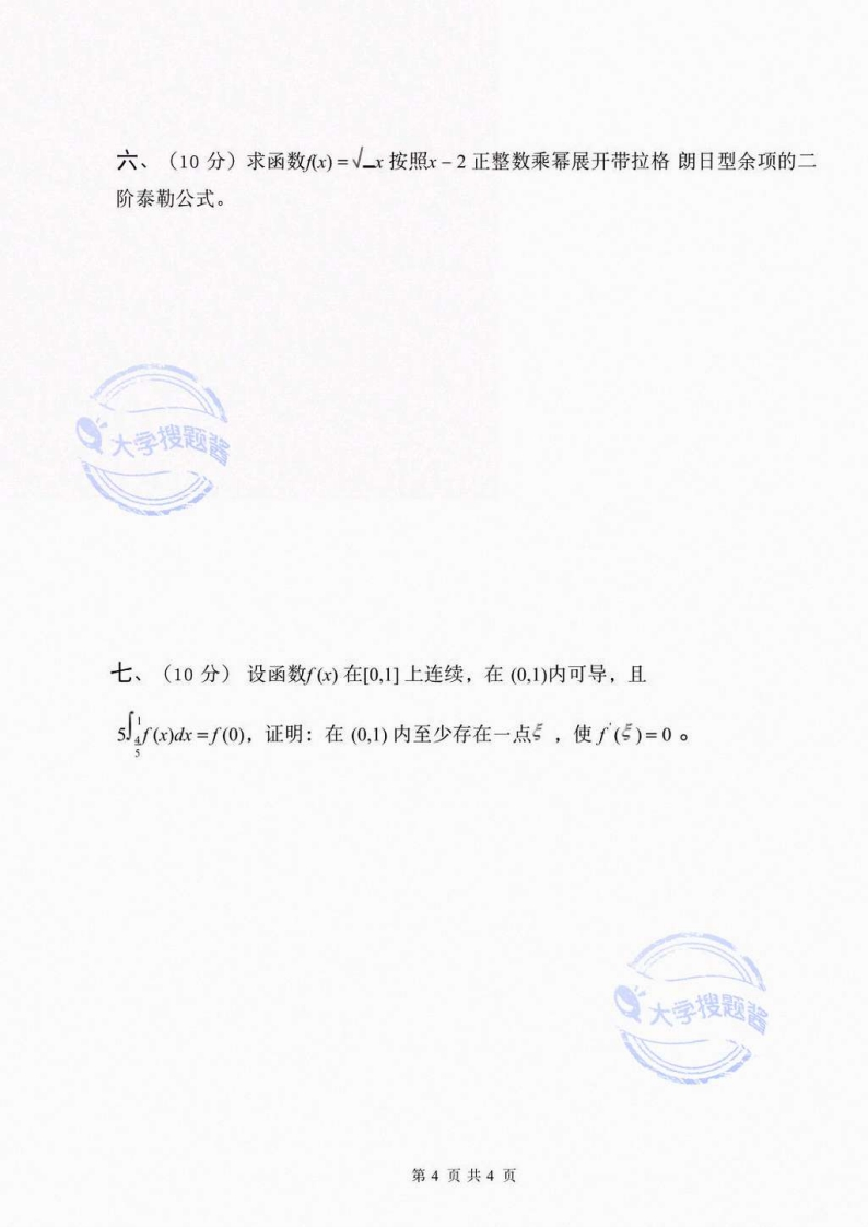 北京大学《高等数学A1》2018-2019学年第一学期期末试卷A卷猴哥6个月前更新关注私信0.22MB4页01.2W+4566北京大学《高等数学A1》2018-2019学年第一学期期末试卷A卷此内容为付费资源,请付费后查看10积分年度会员免费月享会员免费登录购买付费资源 第1页 / 共4页 第2页 / 共4页 第3页 / 共4页 第4页 / 共4页 已完成全部阅读,共4页 © 版权声明文章版权归作者所有,未经允许请勿转载。THE END《北京大学》期中期末历年真题期末试卷 喜欢就支持一下吧点赞4566赞赏 分享QQ空间微博QQ好友海报分享复制链接收藏