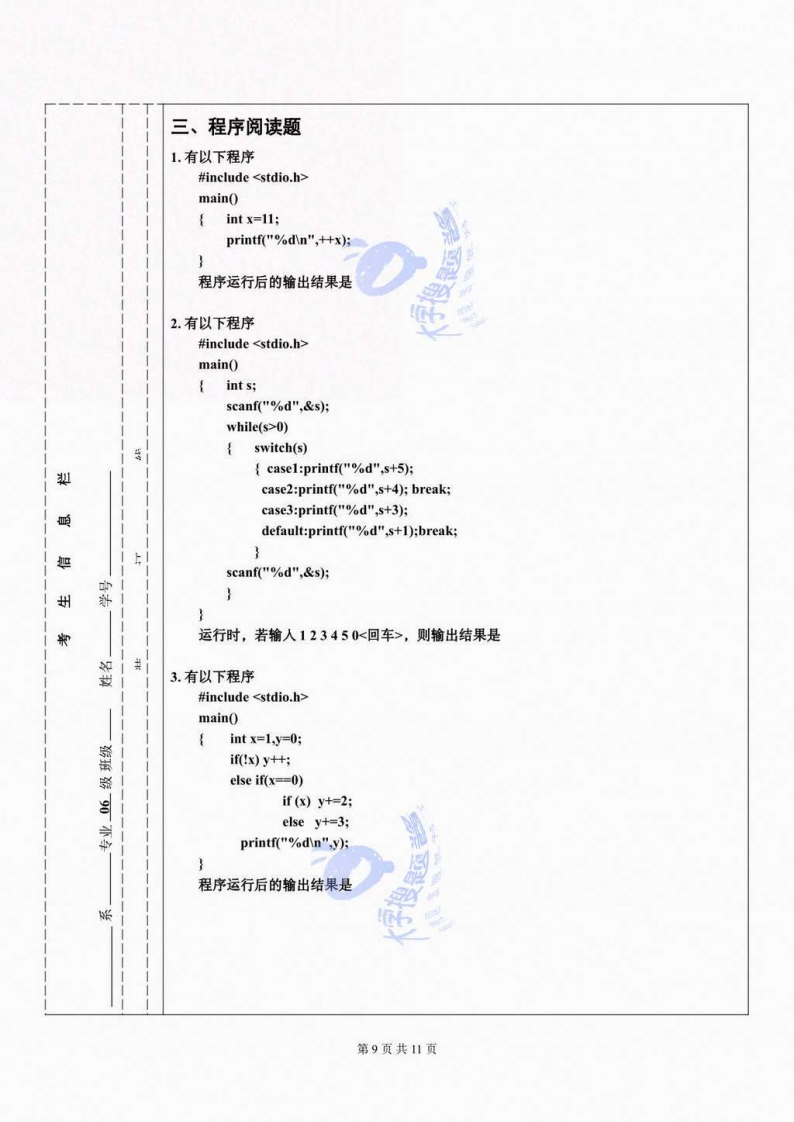 北京大学医学部《C语言程序设计》2017-2018第一学期期末试卷_14737003猴哥6个月前更新关注私信0.90MB11页01.2W+4532北京大学医学部《C语言程序设计》2017-2018第一学期期末试卷_14737003此内容为付费资源,请付费后查看10积分年度会员免费月享会员免费登录购买付费资源 第1页 / 共11页 第2页 / 共11页 第3页 / 共11页 第4页 / 共11页 第5页 / 共11页 第6页 / 共11页 第7页 / 共11页 第8页 / 共11页 第9页 / 共11页 第10页 / 共11页 第11页 / 共11页 已完成全部阅读,共11页 © 版权声明文章版权归作者所有,未经允许请勿转载。THE END《北京大学》期中期末历年真题《北京大学医学部》期中期末历年真题期末试卷 喜欢就支持一下吧点赞4532赞赏 分享QQ空间微博QQ好友海报分享复制链接收藏
