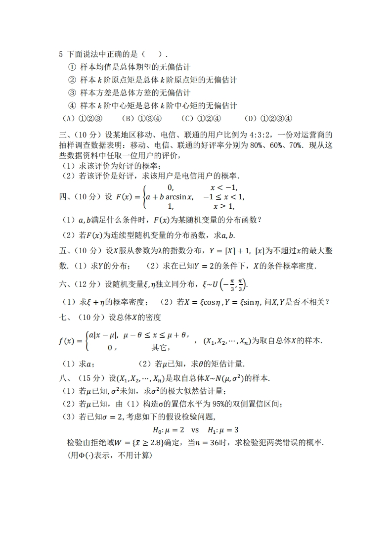 西安交通大学《概率论与数理统计》期末考试模拟题4猴哥6个月前更新关注私信0.35MB2页01.7W+4593西安交通大学《概率论与数理统计》期末考试模拟题4此内容为付费资源,请付费后查看10积分年度会员免费月享会员免费登录购买付费资源已售 148 第1页 / 共2页 第2页 / 共2页 已完成全部阅读,共2页 © 版权声明文章版权归作者所有,未经允许请勿转载。THE END《西安交通大学》期中期末历年真题期末试卷 喜欢就支持一下吧点赞4593赞赏 分享QQ空间微博QQ好友海报分享复制链接收藏