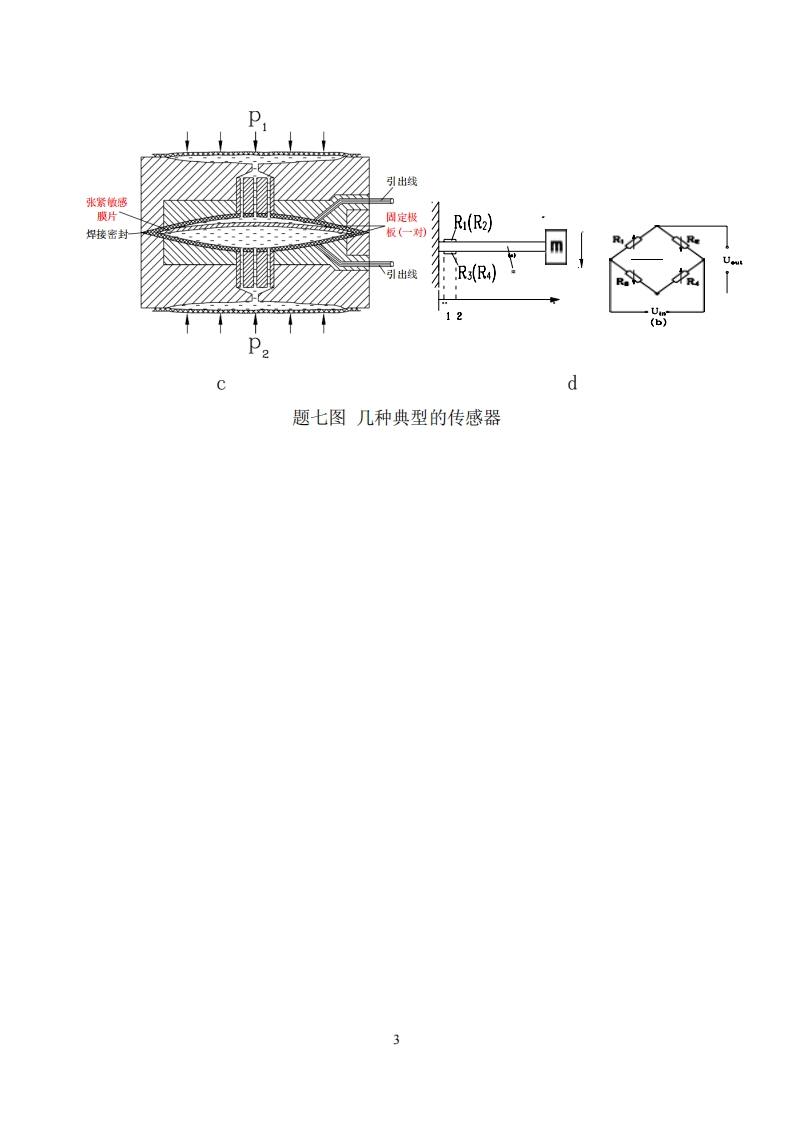 北京航空航天大学本科生“传感器技术及应用”期末试题学年:2021-2022学号:姓名:总分:100分一、(本题12分)谈谈你对传感器关键词的理解。二、简述弹性敏感元件的弹性滞后和弹性后效的物理意义?它们影响传感器的哪些性能?(12分)三、(本题12分)论述压阻效应与压电效应的不同点。四、(本题16分)图示为一传感器的工作原理图,这是什么传感器?利用了哪两种原理?画出传感器的框图。绝缘体固定电极Cm弹簧片活动极板(质量块)题四图五、(本题16分)如何提高谐振敏感元件的机械品质因数?