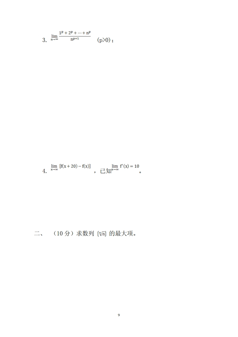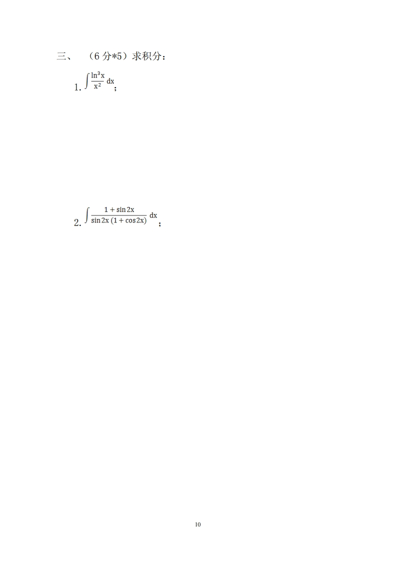 复旦大学《高等数学》2020-2021学年第1学期期末试卷A猴哥6个月前更新关注私信0.33MB6页086622503复旦大学《高等数学》2020-2021学年第1学期期末试卷A此内容为付费资源,请付费后查看10积分年度会员免费月享会员免费登录购买付费资源已售 105 第1页 / 共6页 第2页 / 共6页 第3页 / 共6页 试读已结束,还剩3页,您可下载完整版后进行离线阅读 © 版权声明文章版权归作者所有,未经允许请勿转载。THE END《复旦大学》期中期末历年真题期末试卷 文本预览 复旦大学数学科学学院2010~2011学年第一学期期末考试试卷A卷课程名称:高等数学C(上)课程代码:MATH120005开课院系:数学科学学院考试形式:闭卷姓名:学号:专业:题号1234568总分得分(5分*4)求极限:7.gx2.细x sinx8 查看更多 收起部分 喜欢就支持一下吧点赞2503赞赏 分享QQ空间微博QQ好友海报分享复制链接收藏