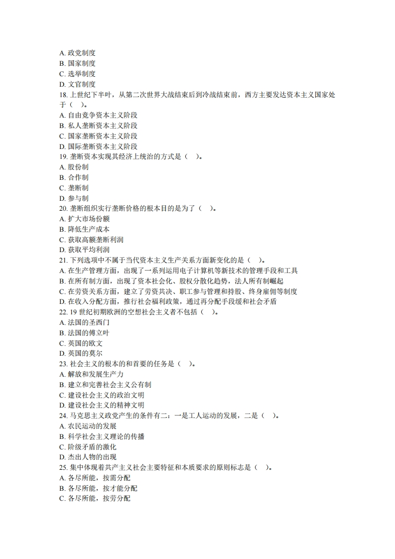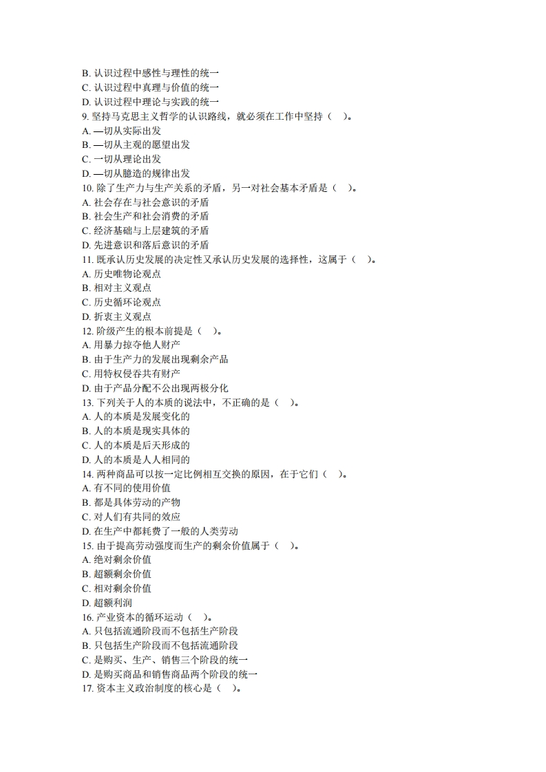 广西大学《马克思主义新闻思想》2020一2021学年第一学期期末试卷一、单项选择题【】(本大题共25小题,每小题2分,共50分)1.马克思主义是时代的产物。马克思恩格斯所处的历史时代及其提出的各项任务,为马克思主义的产生提供了()。A.主观条件B.客观条件C.理论基础D.理论前提2.马克思主义的革命性既表现为它具有彻底的批判精神,又表现为它具有()。A.完整的理论体系B.严密的逻辑结构C.鲜明的政治立场D.崇高的社会理想3.唯物主义与唯心主义的区别在于如何回答()。A.世界的本质是什么的问题B.世界可否被认识的问题C.世界的存在是怎样的问题D.世界有否统一性的问题4.实践作为一种感性物质活动,强调的是()。A.实践具有客观性B.实践具有主观性C.实践具有能动性D.实践具有历史性5.在唯物辩证法的基本范畴中,本质和现象反映了()。A.事物之间引起和被引起的关系B.事物的内在要素和结构方式间的关系C.事物过去、现在和将来的关系D.事物的根本性质和表面特征间的关系6.意识的能动性最突出的表现是,意识活动()。A.具有目的性和计划性B.能通过指导实践改造世界C.具有主动性和创造性D.能影响人的生理活动7.作为认识和实践活动的承担者,认识主体所具有的突出特点是()。A.能动性B.社会性C.历史性D.客观性8.脱离实践的理论是空洞的理论:没有理论指导的实践是盲目的实践。这句话强调的是().A.认识过程中墓写与创造的统一