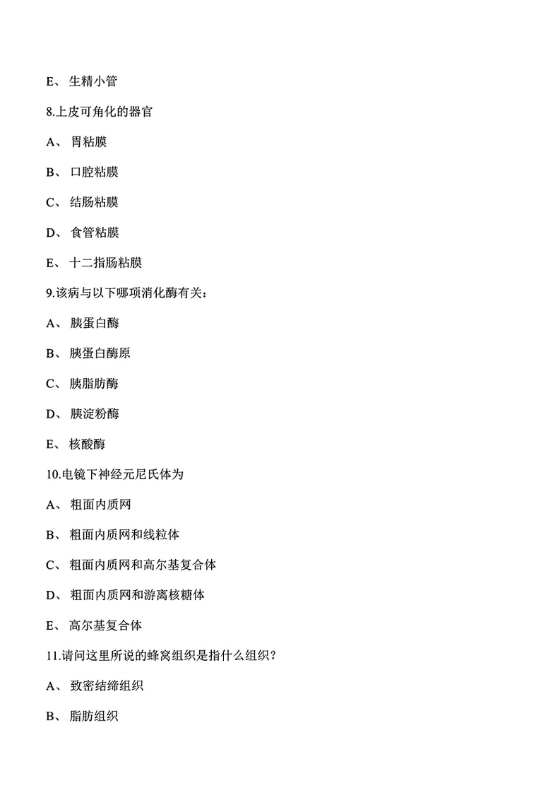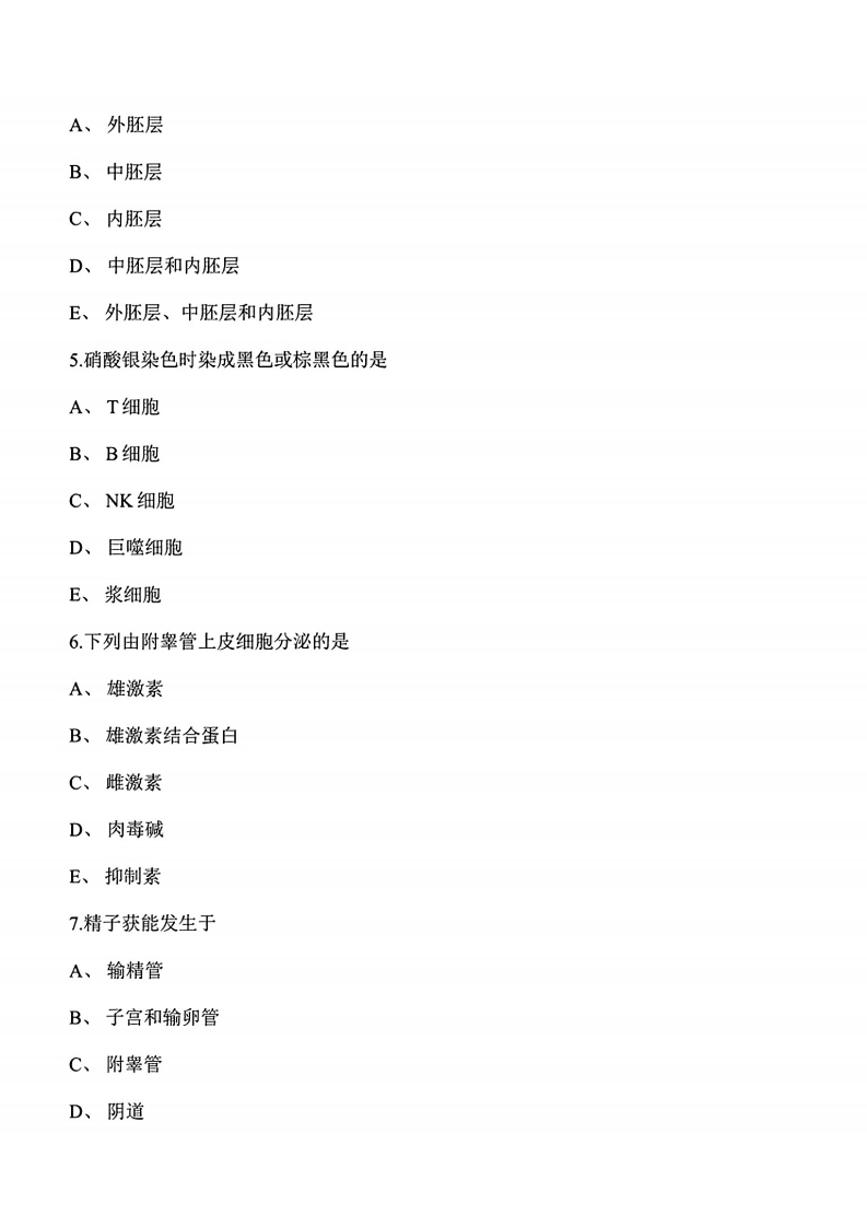 华中科技大学《组织学与胚胎学》2021-2022学年期末试卷(1)猴哥6个月前更新关注私信3.06MB17页051163043华中科技大学《组织学与胚胎学》2021-2022学年期末试卷(1)此内容为付费资源,请付费后查看10积分年度会员免费月享会员免费登录购买付费资源已售 135 第1页 / 共17页 第2页 / 共17页 第3页 / 共17页 试读已结束,还剩14页,您可下载完整版后进行离线阅读 © 版权声明文章版权归作者所有,未经允许请勿转载。THE END《华中科技大学》期中期末历年真题期末试卷 文本预览 华中科技大学2021-2022学年第一学期《组织学与胚胎学》课程期末考试卷一、单选题(总共30题,共30分)1.输卵管来源于A、中肾小管B、中肾管C、中肾旁管D、尿囊E、泌尿生殖窦2引起过敏反应的主要细胞A、睾丸间质细胞B、直精小管上皮细胞C、前列腺腺泡上皮细胞D、附睾管上皮细胞E、睾丸支持细胞3T淋巴细胞主要分布于淋巴结A、浅层皮质B、副皮质区C、皮质窦D、髓窦E、皮质与髓质交界处4.心脏起源于 查看更多 收起部分 喜欢就支持一下吧点赞3043赞赏 分享QQ空间微博QQ好友海报分享复制链接收藏