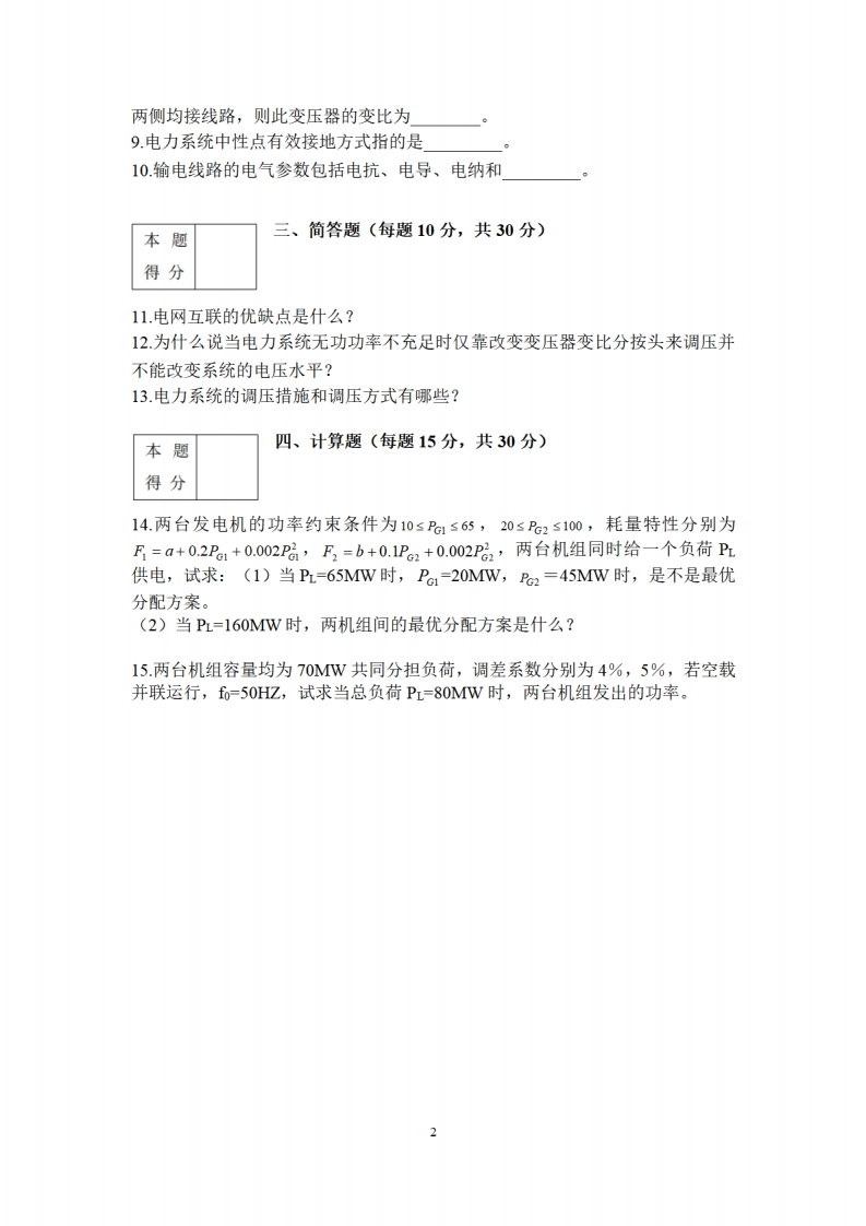 吉林大学《电力系统分析》2020-2021学年期末试卷(1)此内容为付费资源,请付费后查看