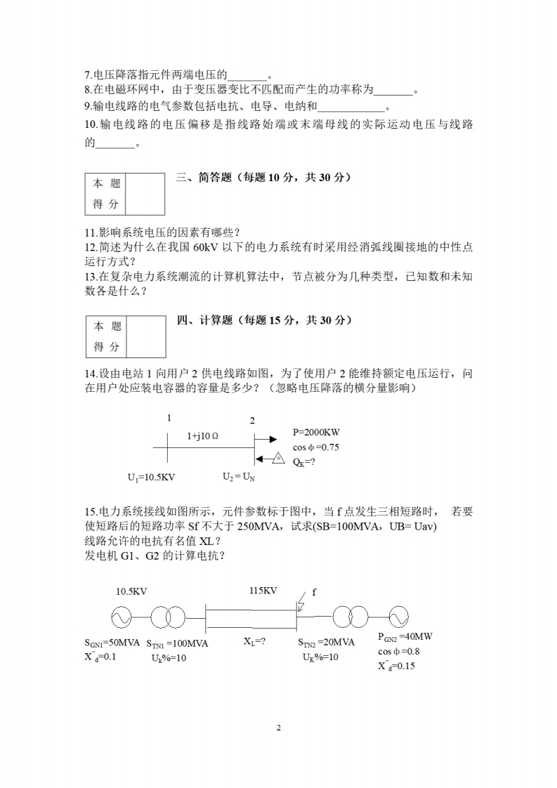 吉林大学《电力系统分析》2021-2022学年期末试卷(1)此内容为付费资源,请付费后查看