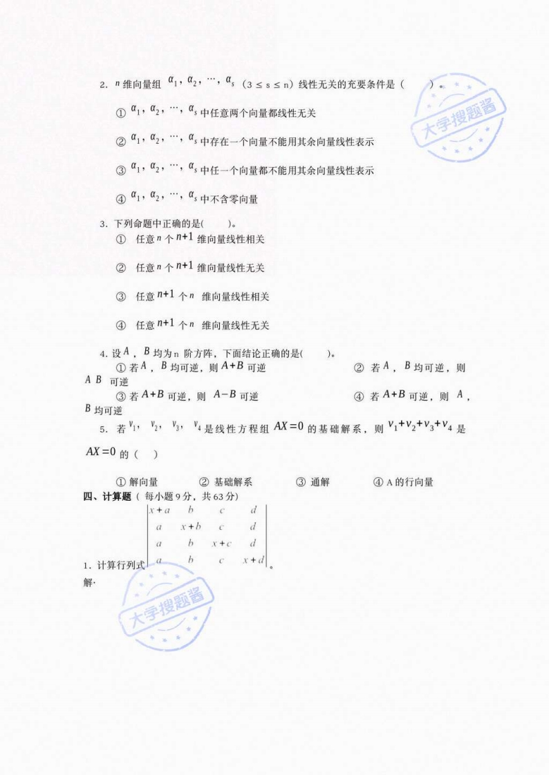 昆明理工大学-线性代数-2016-2017第一学期线性代数期末考试题目_7930775此内容为付费资源,请付费后查看