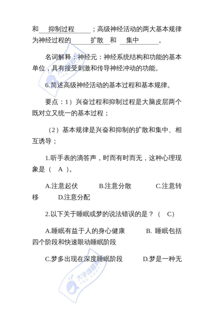 1.个体的心理过程包括(DA.认识过程、情感过程、行为过程B.知觉过程、情感过程、行为过程C.感觉过程、知觉过程、意志过程D.认识过程、情感过程、意志过程2.精神分析学派的代表人物是(B)。A.艾宾浩斯B.弗洛伊德C.马斯洛D.詹姆斯3.心理学是研究人的(A)的科学。A.心理现象B.心理过程C.认识过程D.个性心理41879年,德国心理学家冯特在莱比锡大学建立了世界上第一个心理实验室,正式标志着心理学的“诞生”。5.心理是人脑的机能,人的心理是对客观现实的主观能动地反映。6,名词解释:心理学心理学是研究心理现象及其