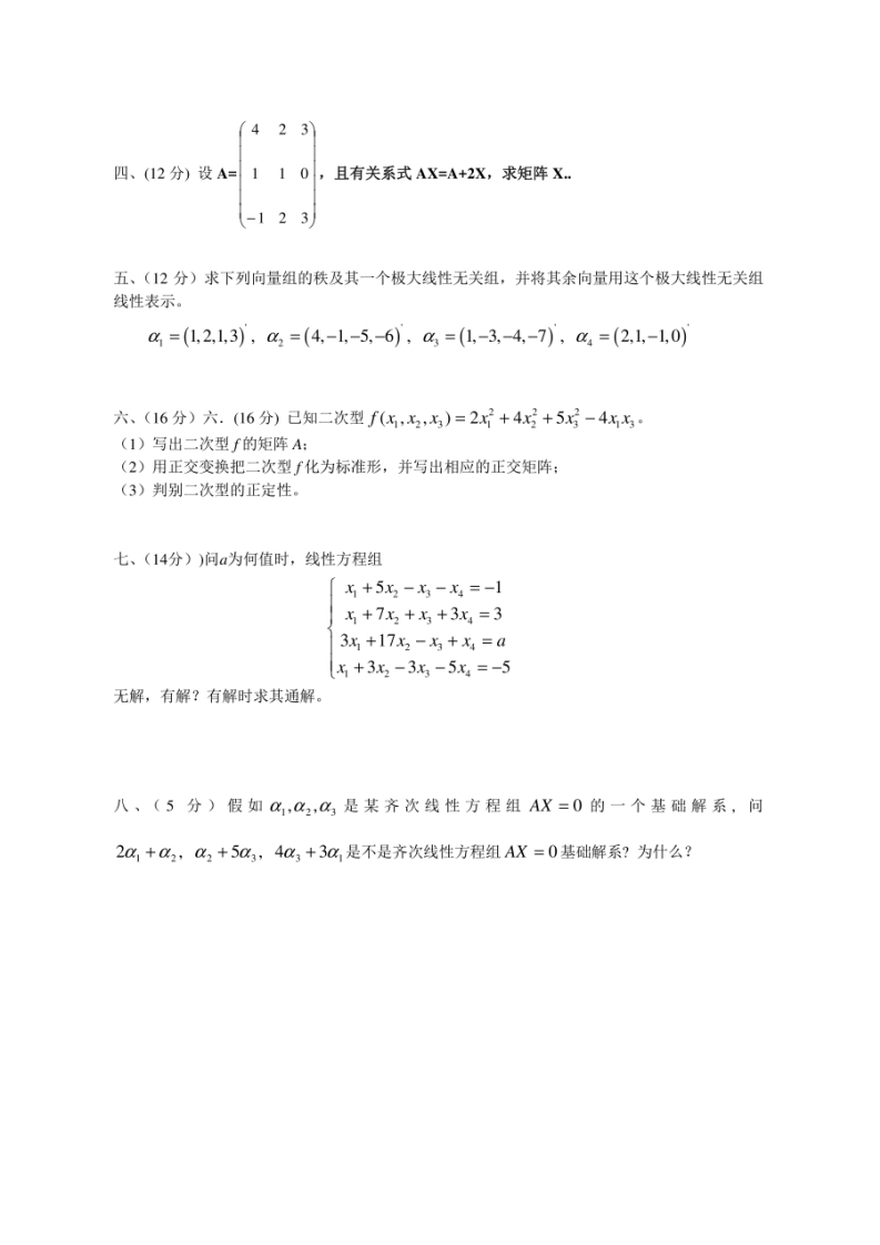 清华大学《线性代数》2022-2023学年期末试卷-学习资源网 - 学习助手专注分享优质学习资源