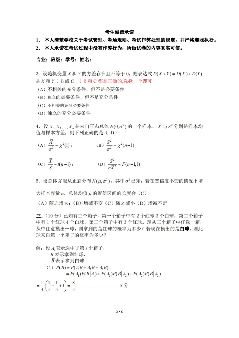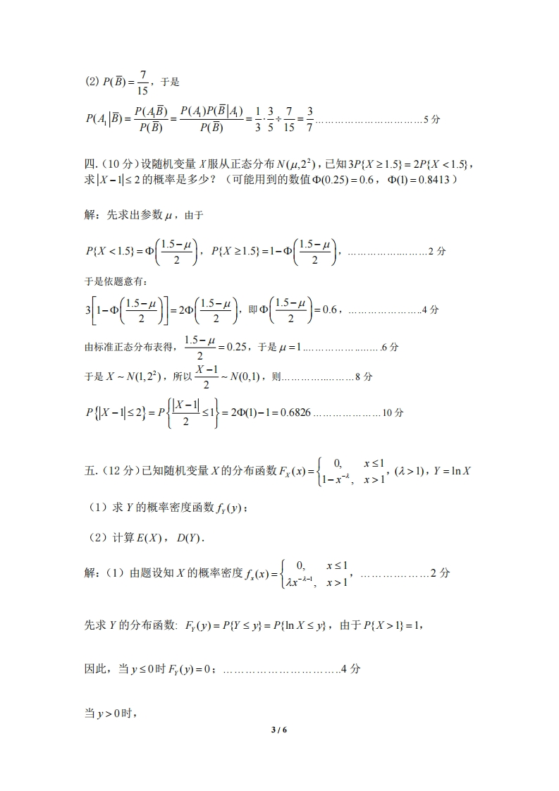 陕西师范大学《概率论与数理统计C》2020-2021学年期末试卷A卷猴哥6个月前更新关注私信0.20MB6页04443陕西师范大学《概率论与数理统计C》2020-2021学年期末试卷A卷此内容为付费资源,请付费后查看10积分年度会员免费月享会员免费登录购买付费资源已售 501 第1页 / 共6页 第2页 / 共6页 第3页 / 共6页 试读已结束,还剩3页,您可下载完整版后进行离线阅读 © 版权声明文章版权归作者所有,未经允许请勿转载。THE END《陕西师范大学》期中期末历年真题期末试卷 文本预览 陕西师范大学2020~2021学年秋季学期概率论与数理统计(C)课程考试试题(A)题号二三四五六七八总分得分填空题(每空3分,满分21分)1.已知P(B)=0.3,P(AUB)=0.6,则P(AB)=032.某人向同一目标独立重复射击,每次射击命中目标的概率为p(0 查看更多 收起部分 喜欢就支持一下吧点赞43赞赏 分享QQ空间微博QQ好友海报分享复制链接收藏 猴哥关注 04.7W+0281270W+ 分享各类学习考试资料,欢迎关注我。 北京理工大学-睿信书院-《复变函数与积分变换》2018-2019学年期末试卷B卷北京理工大学-睿信书院-《复变函数与积分变换》2018-2019学年期末试...6个月前 2.3W+北京理工大学《计算机基础》2018-2019学年期末试卷北京理工大学《计算机基础》2018-2019学年期末试卷6个月前 2.3W+北京理工大学《高等数学》2019-2020学年期末试卷北京理工大学《高等数学》2019-2020学年期末试卷6个月前 2.3W+北京理工大学数据结构期末试卷北京理工大学数据结构期末试卷6个月前 2.3W+北京理工大学《计算机基础》2017-2018学年期末试卷北京理工大学《计算机基础》2017-2018学年期末试卷6个月前 2.3W+北京理工大学-睿信书院-《复变函数与积分变换》2016-2017学年期末试卷A卷北京理工大学-睿信书院-《复变函数与积分变换》2016-2017学年期末试...6个月前 2.3W+ 上一篇 山西农业大学《中国近现代史纲要》2022-2023年第一学期期末试卷_11693556 下一篇 陕西师范大学《高等数学》2020-2021第一学期期末试卷_5138934 相关推荐 北京理工大学-睿信书院-《复变函数与积分变换》2018-2019学年期末试卷B卷北京理工大学-睿信书院-《复变函数与积分变换》2018-2019学年期末试卷B卷6个月前 2.3W+北京理工大学《计算机基础》2018-2019学年期末试卷北京理工大学《计算机基础》2018-2019学年期末试卷6个月前 2.3W+北京理工大学《高等数学》2019-2020学年期末试卷北京理工大学《高等数学》2019-2020学年期末试卷6个月前 2.3W+北京理工大学数据结构期末试卷北京理工大学数据结构期末试卷6个月前 2.3W+北京理工大学《计算机基础》2017-2018学年期末试卷北京理工大学《计算机基础》2017-2018学年期末试卷6个月前 2.3W+北京理工大学-睿信书院-《复变函数与积分变换》2016-2017学年期末试卷A卷北京理工大学-睿信书院-《复变函数与积分变换》2016-2017学年期末试卷A卷6个月前 2.3W+ 评论 抢沙发 请登录后发表评论 登录 注册 暂无评论内容