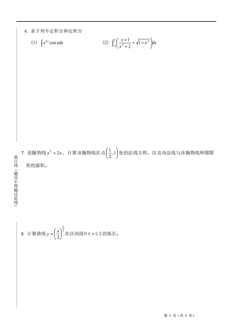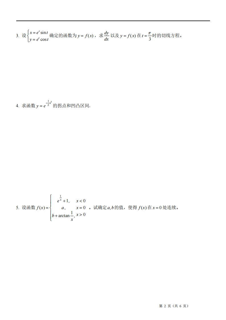 诚信应考,考试作弊将带来严重后果!考试中心填写:年月日西安交通大学课程考试试卷考试用课程名称:高等数学A1:课程编码:GE03025:试卷编号:A:考试时间:120分钟题号1-23-56-89-1112-1314总分应得分12181824208100实得分评卷人一、计算题1(每小题6分,共48分)1.求下列函数的极限:2,任司线(答题不得超过此线)的所有间断点,并指出各间断点的类型。那2.求函数fx)=snx+xsinx第1页(共6页)