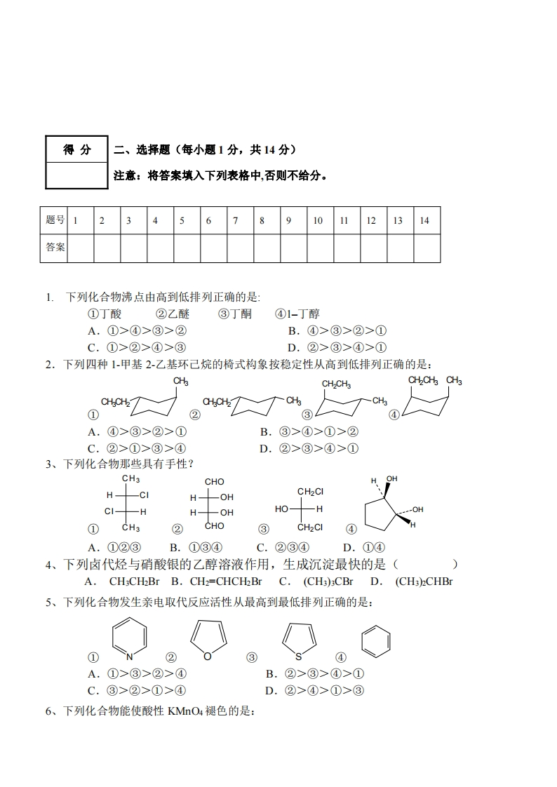 西安交通大学《有机化学》2020-2021学年期末试卷(1)-学习资源网 - 学习助手专注分享优质学习资源