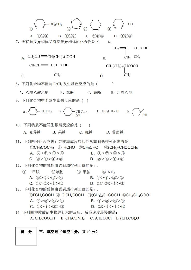 西安交通大学《有机化学》2020-2021学年期末试卷(1)