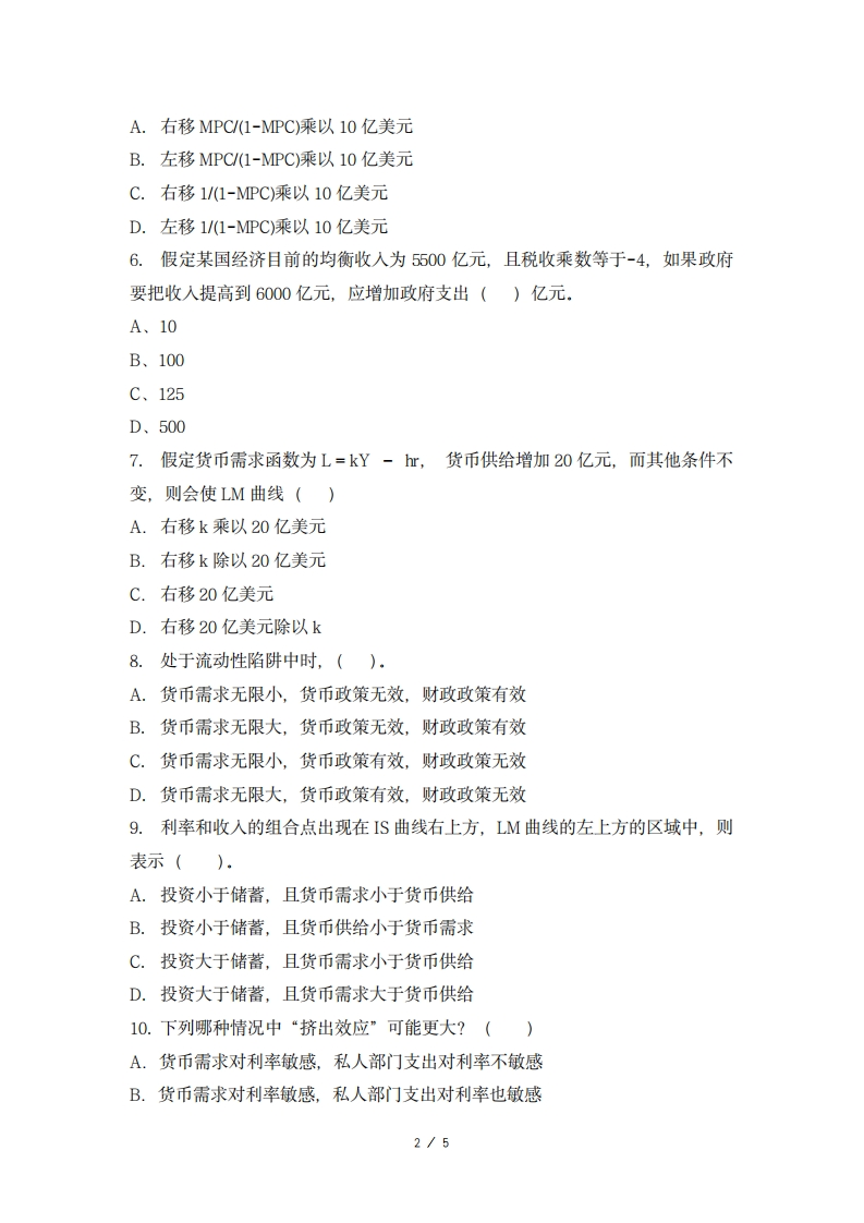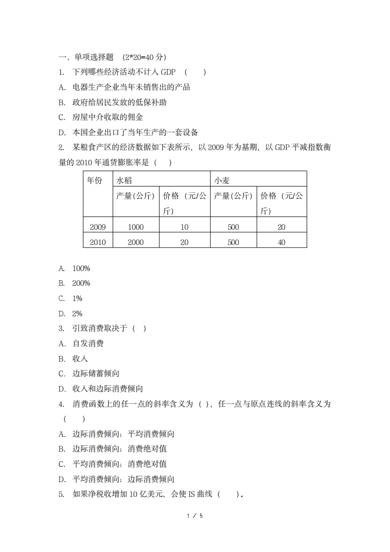 西南财经大学本科期末考试试题册(A)(2020-2021学年第2学期)以下各项由命题教师填写:财履课程名称:宏观经济学命题教师:课程组适用对象(年级专业):全校使用试题的任课教师姓名:全校试题说明:召1、考试类型闭卷[V]开卷[]2、本套试题残3道大题,共5页,完卷时间12分钟.3、考试用品中除纸、笔、尺子外,可另带的用具有:计算器门字典小等AND(请在下划线上填业县体数字或内容,所选已内打钩)ERSITY OF FIN考试时间(由制卷方填):以下各项由学生填写:任课教师:年级专业:学生姓名:学号:考生注意事项:1.出示学生证(或身份证)和准考证于桌面左上角,以备查验.2.拿到试卷后清点并检查试卷页数,如有重页、页数不足、空白页及印刷模糊等举手向监考教师示意调换试卷。3答题前先将试题册及答题纸上的任课教师、专业、年级、学号、姓名填写完整。4所有答案均需填写在答题纸上,答在试题册上无效。5.考生不得携带任何通讯工具进入考场。6.考试结束后,将试题册、答题纸和草稿纸等下发材料上交监考教师,不得带离考场」7严格遵守考场纪律。