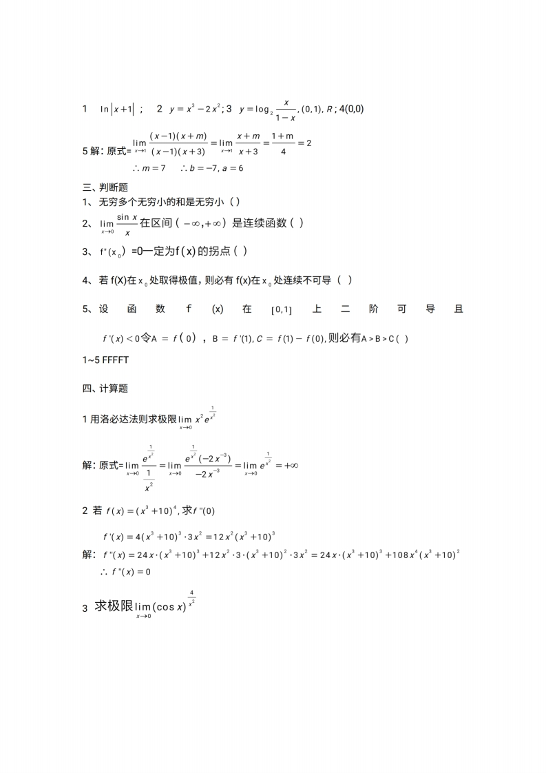 浙江大学《微积分》2021-2022第二学期期末试卷一、选择题6×2)1设f(x)=2,g(x)=()m“在区间(0,)内()。Af(x)是增函数,g(x)是减函数Bf(x)是减函数,9(x)是增函数C二者都是增函数D二者都是减函数2、X→0时,e2-cosx与sinx相比是()A高阶无穷小B低阶无穷小C等价无穷小D同阶但不等价无价小3、×=0是函数y=(1-sinx)的()A连续点B可去间断点C跳跃间断点D无穷型间断点4、下列数列有极限并且极限为1的选项为()AX。=(-1)°-nB X.=sin211cX,=g(a>1)DX。=c0s-n5、若f"(x)在x处取得最大值,则必有()Af (x)=oBf (x)
