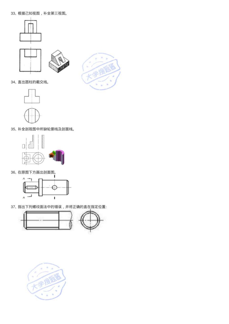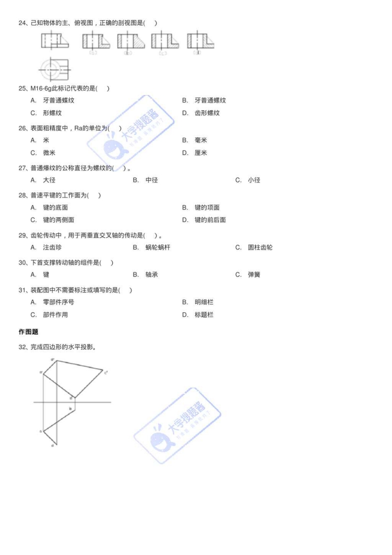 中南大学2020-2021期末试卷B卷(画法几何及工程制图)_315835此内容为付费资源,请付费后查看