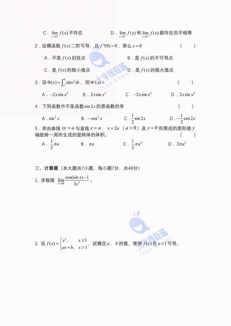 中山大学《高等数学》2022-2023第一学期期末试卷_7625819此内容为付费资源,请付费后查看