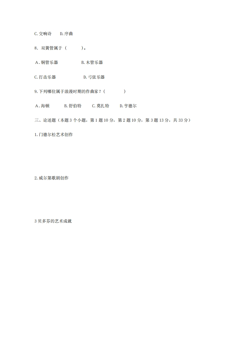 中央音乐学院《西方音乐史》2021-2022学年期末试卷(1)