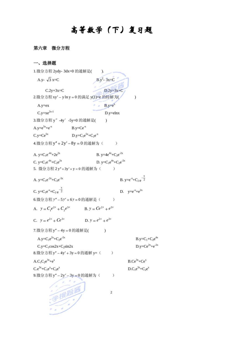 高等数学(下)复习题_3824276猴哥6个月前更新关注私信1.43MB20页01.4W+6137高等数学(下)复习题_3824276此内容为付费资源,请付费后查看5积分年度会员免费月享会员免费登录购买付费资源已售 830 第1页 / 共20页 第2页 / 共20页 第3页 / 共20页 试读已结束,还剩17页,您可下载完整版后进行离线阅读 © 版权声明文章版权归作者所有,未经允许请勿转载。THE END期末试卷 文本预览 高等数学(下)复习题大学搜题酱二00四年入月大学搜题酱 查看更多 收起部分 喜欢就支持一下吧点赞6137赞赏 分享QQ空间微博QQ好友海报分享复制链接收藏