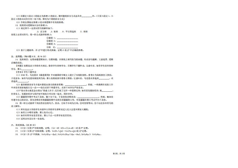 北京大学《逻辑导论》2018年春期末试卷猴哥6个月前更新关注私信0.19MB2页01.5W+5527北京大学《逻辑导论》2018年春期末试卷此内容为付费资源,请付费后查看10积分年度会员免费月享会员免费登录购买付费资源已售 817 第1页 / 共2页 第2页 / 共2页 已完成全部阅读,共2页 © 版权声明文章版权归作者所有,未经允许请勿转载。THE END《北京大学》期中期末历年真题期末试卷 喜欢就支持一下吧点赞5527赞赏 分享QQ空间微博QQ好友海报分享复制链接收藏