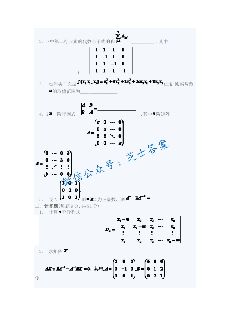 上海交通大学《线性代数》2003-2004学年第一学期期末试卷猴哥6个月前发布关注私信0.45MB4页03326上海交通大学《线性代数》2003-2004学年第一学期期末试卷此内容为付费资源,请付费后查看10积分年度会员免费月享会员免费登录购买付费资源已售 40 第1页 / 共4页 第2页 / 共4页 第3页 / 共4页 试读已结束,还剩1页,您可下载完整版后进行离线阅读 © 版权声明文章版权归作者所有,未经允许请勿转载。THE END《上海交通大学》期中期末历年真题期末试卷 喜欢就支持一下吧点赞26赞赏 分享QQ空间微博QQ好友海报分享复制链接收藏