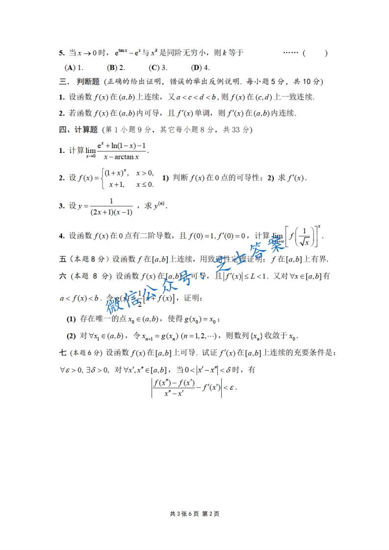 上海交通大学《数学分析A》2012-2013学年第一学期期中试卷猴哥6个月前发布关注私信0.36MB2页09924上海交通大学《数学分析A》2012-2013学年第一学期期中试卷此内容为付费资源,请付费后查看10积分年度会员免费月享会员免费登录购买付费资源已售 40 第1页 / 共2页 第2页 / 共2页 已完成全部阅读,共2页 © 版权声明文章版权归作者所有,未经允许请勿转载。THE END《上海交通大学》期中期末历年真题期末试卷 喜欢就支持一下吧点赞24赞赏 分享QQ空间微博QQ好友海报分享复制链接收藏