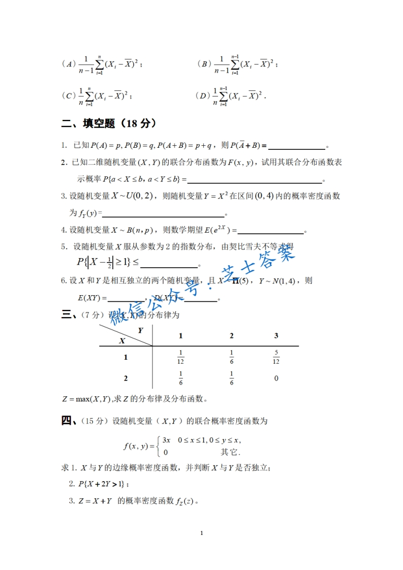 北京航空航天大学《概率统计》2007-2008学年第一学期期末试卷猴哥6个月前发布关注私信1.10MB8页05317北京航空航天大学《概率统计》2007-2008学年第一学期期末试卷此内容为付费资源,请付费后查看10积分年度会员免费月享会员免费登录购买付费资源已售 50 第1页 / 共8页 第2页 / 共8页 第3页 / 共8页 试读已结束,还剩5页,您可下载完整版后进行离线阅读 © 版权声明文章版权归作者所有,未经允许请勿转载。THE END《北京航空航天大学》期中期末历年真题期末试卷 喜欢就支持一下吧点赞17赞赏 分享QQ空间微博QQ好友海报分享复制链接收藏