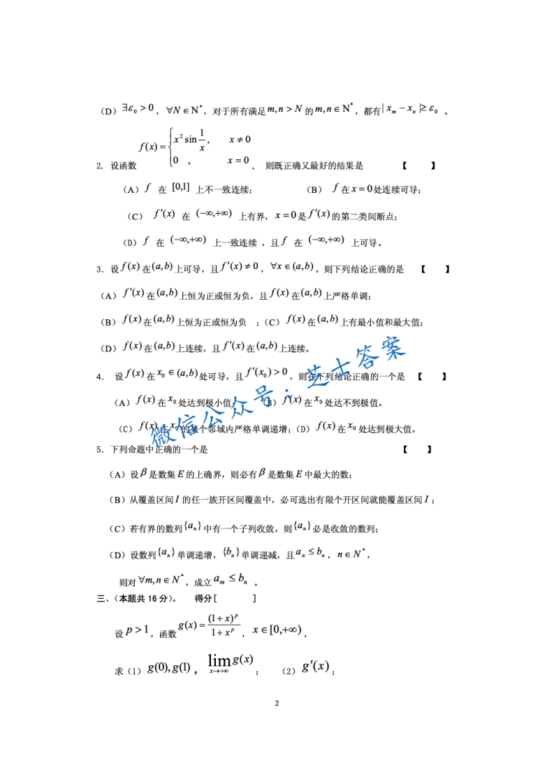 北京航空航天大学《工科数学分析》2007-2008学年第一学期期中试卷-学习资源网 - 分享优质学习资料