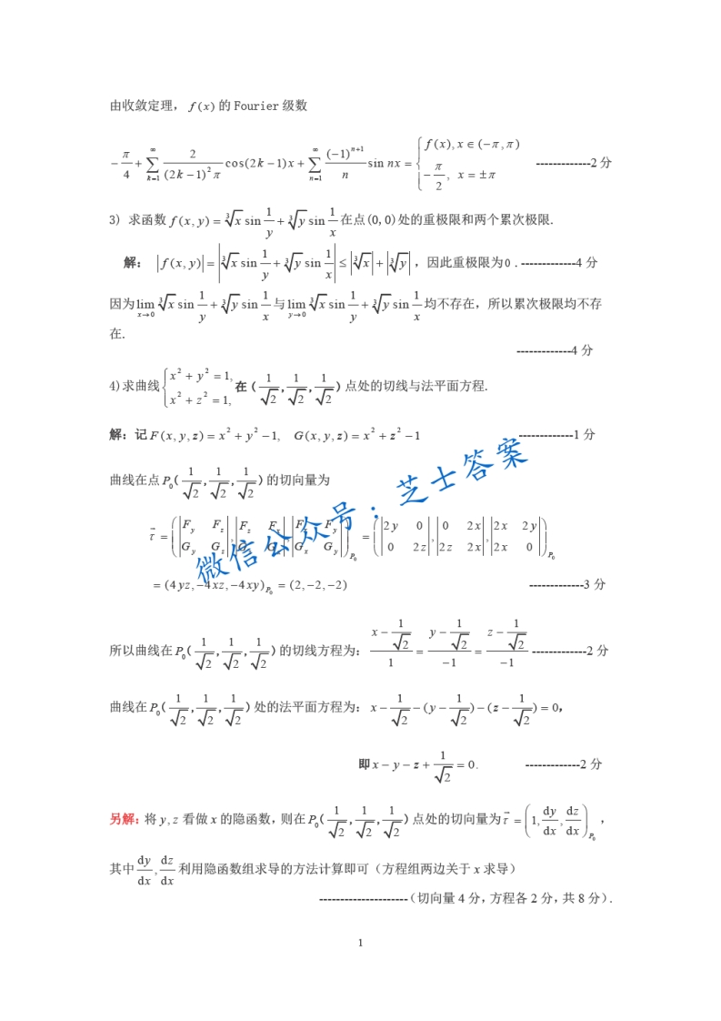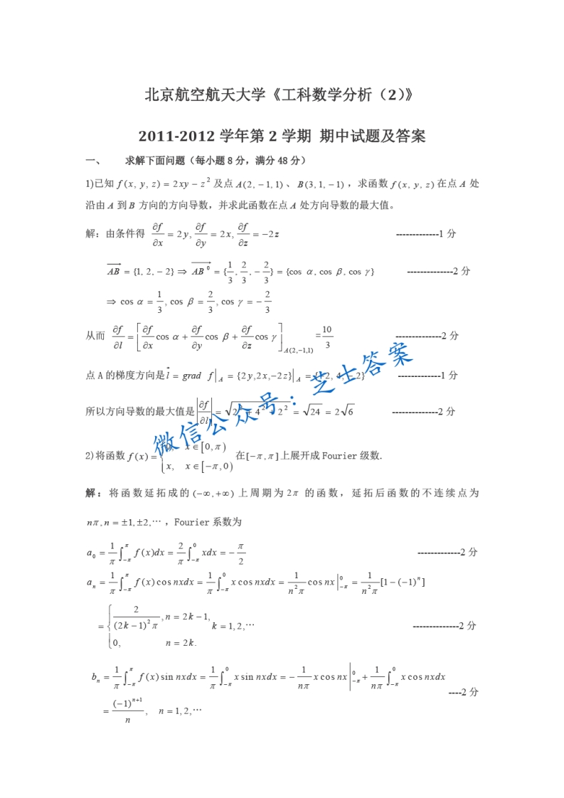 北京航空航天大学《工科数学分析》2011-2012学年第二学期期中试卷-学习资源网 - 分享优质学习资料