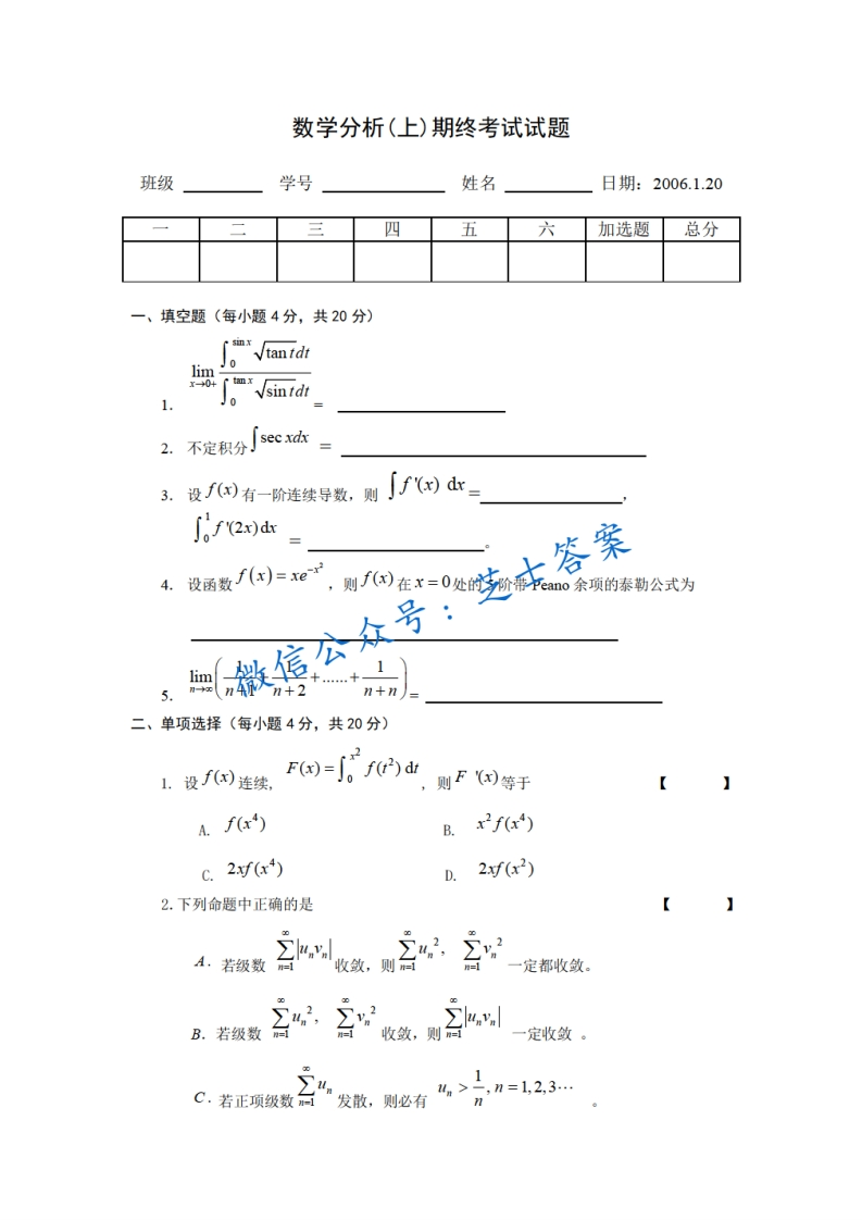 北京航空航天大学《数学分析》2005-2006学年第一学期期末试卷猴哥6个月前发布关注私信0.53MB8页03453北京航空航天大学《数学分析》2005-2006学年第一学期期末试卷此内容为付费资源,请付费后查看10积分年度会员免费月享会员免费登录购买付费资源已售 50 第1页 / 共8页 第2页 / 共8页 第3页 / 共8页 试读已结束,还剩5页,您可下载完整版后进行离线阅读 © 版权声明文章版权归作者所有,未经允许请勿转载。THE END《北京航空航天大学》期中期末历年真题期末试卷 喜欢就支持一下吧点赞53赞赏 分享QQ空间微博QQ好友海报分享复制链接收藏