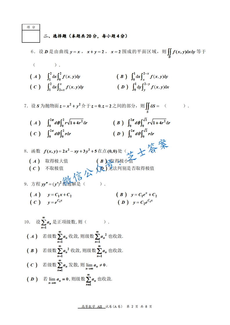 北京科技大学《高等数学》2007-2008学年第二学期期末试卷A卷猴哥6个月前发布关注私信0.83MB8页04754北京科技大学《高等数学》2007-2008学年第二学期期末试卷A卷此内容为付费资源,请付费后查看10积分年度会员免费月享会员免费登录购买付费资源已售 50 第1页 / 共8页 第2页 / 共8页 第3页 / 共8页 试读已结束,还剩5页,您可下载完整版后进行离线阅读 © 版权声明文章版权归作者所有,未经允许请勿转载。THE END《北京科技大学》期中期末历年真题期末试卷 喜欢就支持一下吧点赞54赞赏 分享QQ空间微博QQ好友海报分享复制链接收藏