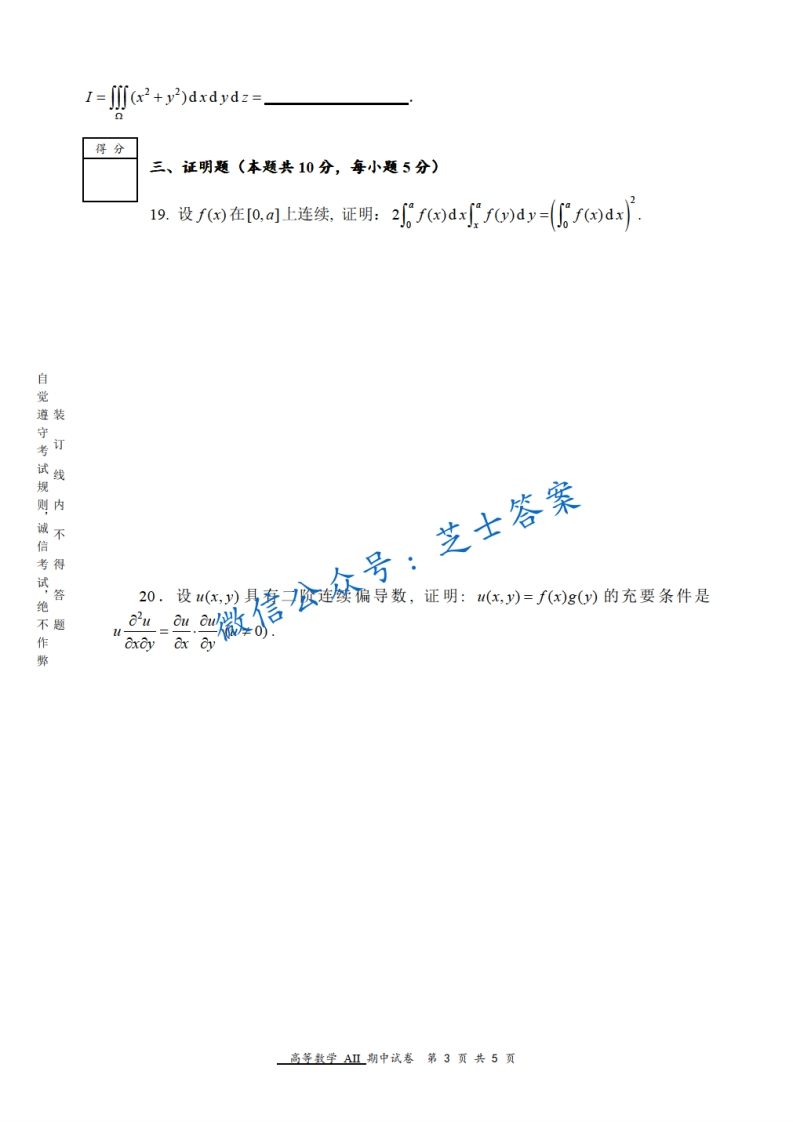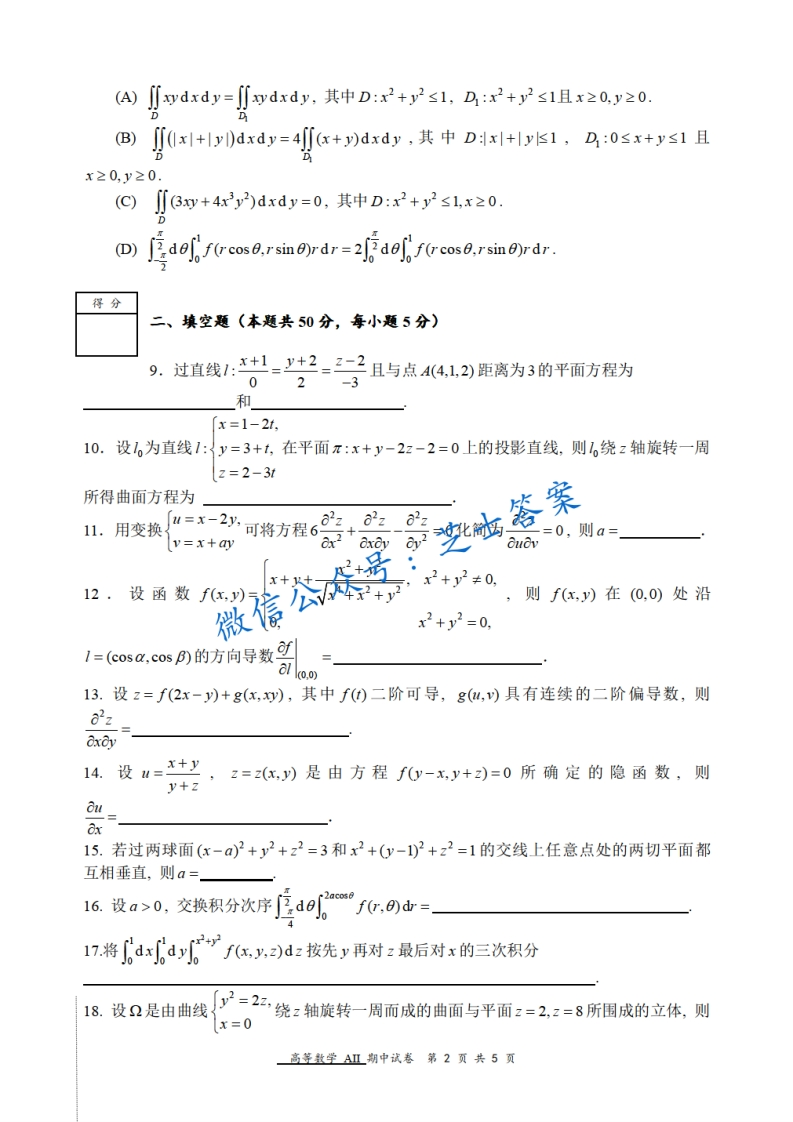 北京科技大学《高等数学》2009-2010学年第二学期期中试卷-学习资源网 - 分享优质学习资料