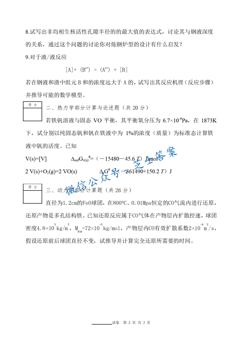 北京科技大学《冶金物理化学》2010-2011学年第一学期期末试卷A卷猴哥6个月前发布关注私信0.44MB2页04263北京科技大学《冶金物理化学》2010-2011学年第一学期期末试卷A卷此内容为付费资源,请付费后查看10积分年度会员免费月享会员免费登录购买付费资源已售 50 第1页 / 共2页 第2页 / 共2页 已完成全部阅读,共2页 © 版权声明文章版权归作者所有,未经允许请勿转载。THE END《北京科技大学》期中期末历年真题期末试卷 喜欢就支持一下吧点赞63赞赏 分享QQ空间微博QQ好友海报分享复制链接收藏