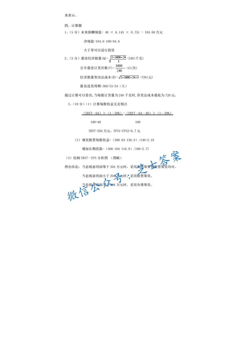 北京理工大学《财务管理学》2014-2015学年第一学期期末试卷B卷猴哥6个月前发布关注私信1.67MB12页03534北京理工大学《财务管理学》2014-2015学年第一学期期末试卷B卷此内容为付费资源,请付费后查看10积分年度会员免费月享会员免费登录购买付费资源已售 50 第1页 / 共12页 第2页 / 共12页 第3页 / 共12页 试读已结束,还剩9页,您可下载完整版后进行离线阅读 © 版权声明文章版权归作者所有,未经允许请勿转载。THE END《北京理工大学》期中期末历年真题期末试卷 喜欢就支持一下吧点赞34赞赏 分享QQ空间微博QQ好友海报分享复制链接收藏