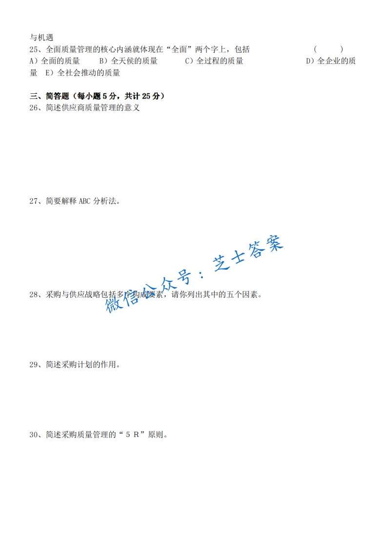 北京理工大学《采购与供应链管理》2012-2013学年第二学期期末试卷B卷猴哥6个月前发布关注私信1.65MB6页07718北京理工大学《采购与供应链管理》2012-2013学年第二学期期末试卷B卷此内容为付费资源,请付费后查看10积分年度会员免费月享会员免费登录购买付费资源已售 50 第1页 / 共6页 第2页 / 共6页 第3页 / 共6页 试读已结束,还剩3页,您可下载完整版后进行离线阅读 © 版权声明文章版权归作者所有,未经允许请勿转载。THE END《北京理工大学》期中期末历年真题期末试卷 喜欢就支持一下吧点赞18赞赏 分享QQ空间微博QQ好友海报分享复制链接收藏