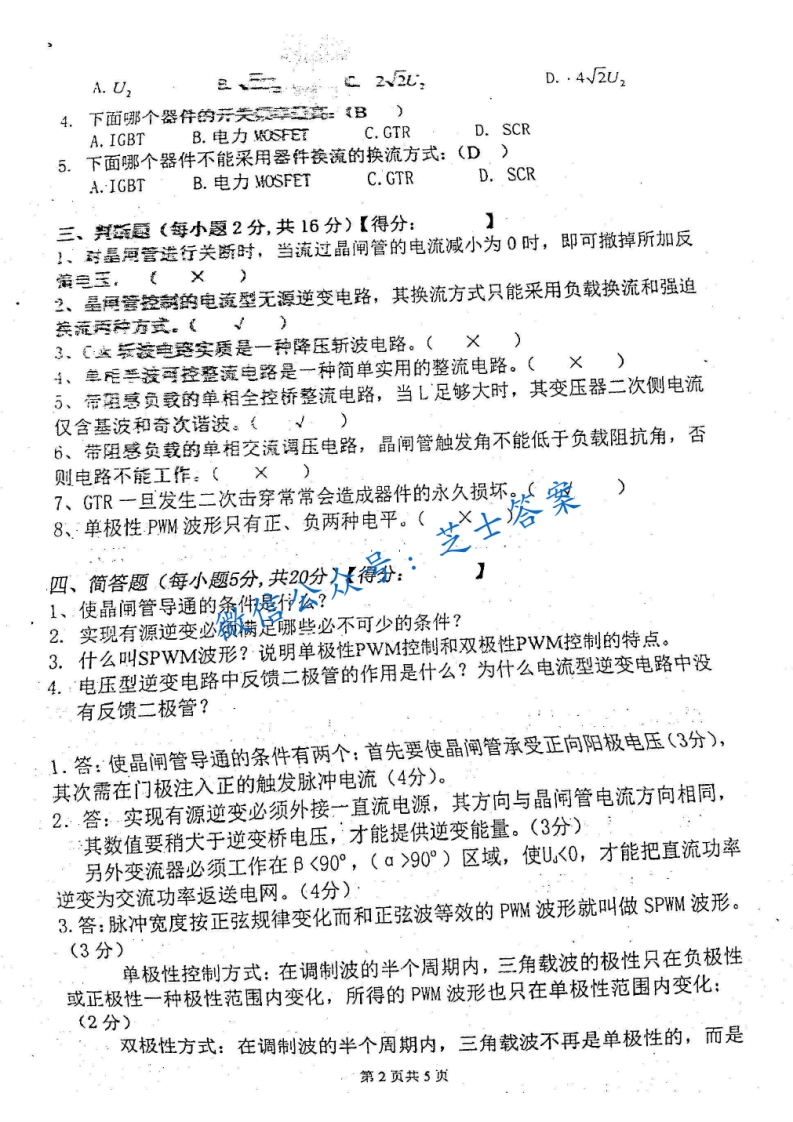 北京理工大学《电力电子》2012-2013学年第一学期期末试卷A卷