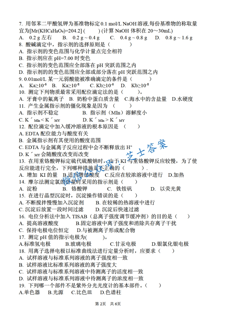 北京理工大学《分析化学》2014-2015学年第二学期期末试卷B卷猴哥6个月前发布关注私信2.33MB8页03936北京理工大学《分析化学》2014-2015学年第二学期期末试卷B卷此内容为付费资源,请付费后查看10积分年度会员免费月享会员免费登录购买付费资源已售 50 第1页 / 共8页 第2页 / 共8页 第3页 / 共8页 试读已结束,还剩5页,您可下载完整版后进行离线阅读 © 版权声明文章版权归作者所有,未经允许请勿转载。THE END《北京理工大学》期中期末历年真题期末试卷 喜欢就支持一下吧点赞36赞赏 分享QQ空间微博QQ好友海报分享复制链接收藏