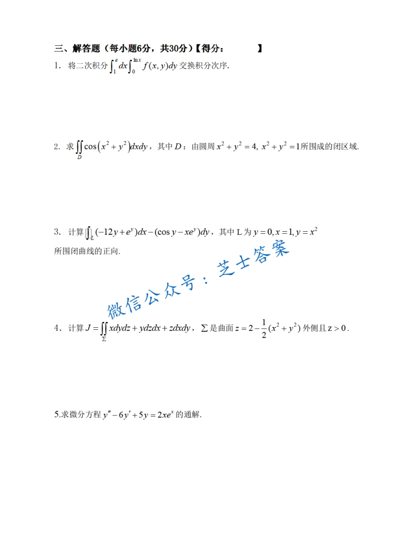 北京理工大学《高等数学》2014-2015学年第二学期期末试卷A卷猴哥6个月前发布关注私信0.52MB4页07139北京理工大学《高等数学》2014-2015学年第二学期期末试卷A卷此内容为付费资源,请付费后查看10积分年度会员免费月享会员免费登录购买付费资源已售 50 第1页 / 共4页 第2页 / 共4页 第3页 / 共4页 试读已结束,还剩1页,您可下载完整版后进行离线阅读 © 版权声明文章版权归作者所有,未经允许请勿转载。THE END《北京理工大学》期中期末历年真题期末试卷 喜欢就支持一下吧点赞39赞赏 分享QQ空间微博QQ好友海报分享复制链接收藏