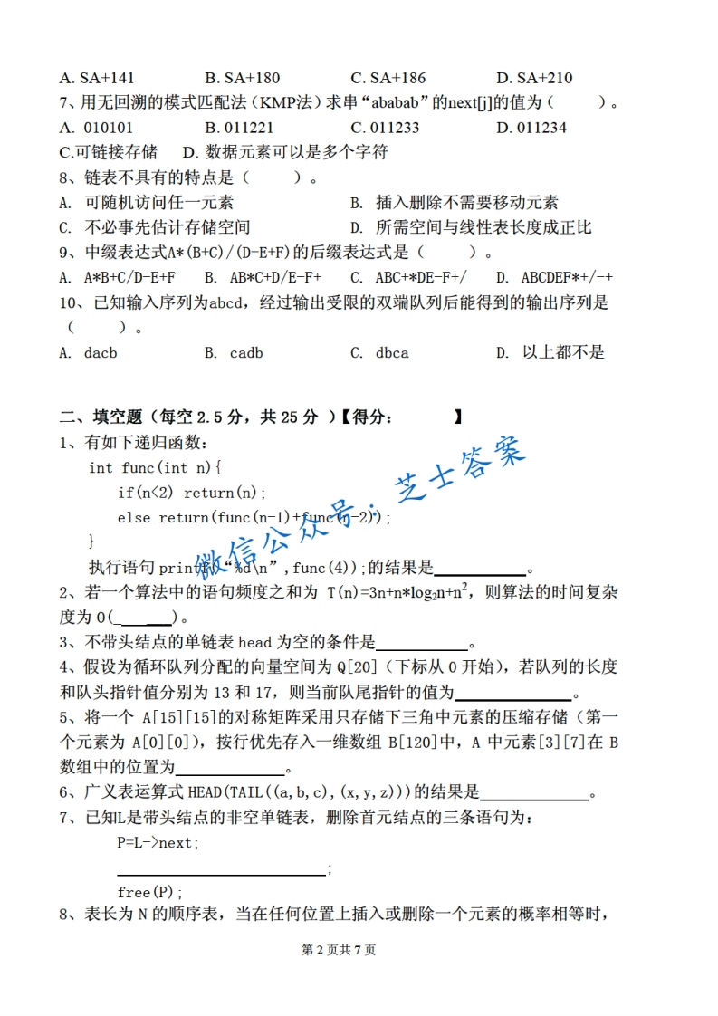 北京理工大学《数据结构》2012-2013学年第二学期期中试卷猴哥6个月前发布关注私信1.45MB7页07318北京理工大学《数据结构》2012-2013学年第二学期期中试卷此内容为付费资源,请付费后查看10积分年度会员免费月享会员免费登录购买付费资源已售 50 第1页 / 共7页 第2页 / 共7页 第3页 / 共7页 试读已结束,还剩4页,您可下载完整版后进行离线阅读 © 版权声明文章版权归作者所有,未经允许请勿转载。THE END《北京理工大学》期中期末历年真题期末试卷 喜欢就支持一下吧点赞18赞赏 分享QQ空间微博QQ好友海报分享复制链接收藏