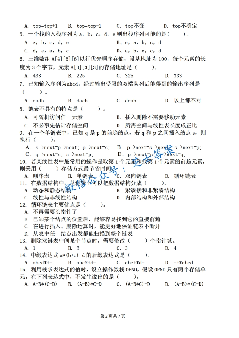 北京理工大学《数据结构》2013-2014学年第二学期期中试卷猴哥6个月前发布关注私信1.63MB7页03019北京理工大学《数据结构》2013-2014学年第二学期期中试卷此内容为付费资源,请付费后查看10积分年度会员免费月享会员免费登录购买付费资源已售 50 第1页 / 共7页 第2页 / 共7页 第3页 / 共7页 试读已结束,还剩4页,您可下载完整版后进行离线阅读 © 版权声明文章版权归作者所有,未经允许请勿转载。THE END《北京理工大学》期中期末历年真题期末试卷 喜欢就支持一下吧点赞19赞赏 分享QQ空间微博QQ好友海报分享复制链接收藏