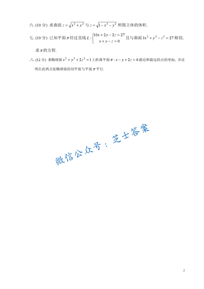 北京理工大学《数学分析A》2007-2008学年第二学期期中试卷B卷猴哥6个月前发布关注私信0.27MB2页07818北京理工大学《数学分析A》2007-2008学年第二学期期中试卷B卷此内容为付费资源,请付费后查看10积分年度会员免费月享会员免费登录购买付费资源已售 50 第1页 / 共2页 第2页 / 共2页 已完成全部阅读,共2页 © 版权声明文章版权归作者所有,未经允许请勿转载。THE END《北京理工大学》期中期末历年真题期末试卷 喜欢就支持一下吧点赞18赞赏 分享QQ空间微博QQ好友海报分享复制链接收藏