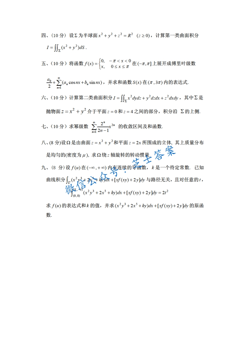 北京理工大学《微积分A》2007-2008学年第二学期期末试卷A卷猴哥6个月前发布关注私信0.87MB6页04830北京理工大学《微积分A》2007-2008学年第二学期期末试卷A卷此内容为付费资源,请付费后查看10积分年度会员免费月享会员免费登录购买付费资源已售 50 第1页 / 共6页 第2页 / 共6页 第3页 / 共6页 试读已结束,还剩3页,您可下载完整版后进行离线阅读 © 版权声明文章版权归作者所有,未经允许请勿转载。THE END《北京理工大学》期中期末历年真题期末试卷 喜欢就支持一下吧点赞30赞赏 分享QQ空间微博QQ好友海报分享复制链接收藏