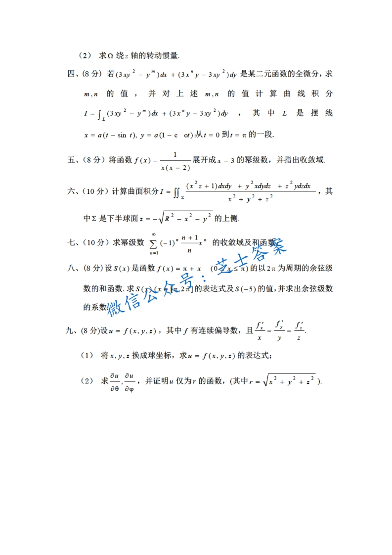 北京理工大学《微积分A》2008-2009学年第二学期期末试卷A卷猴哥6个月前发布关注私信0.89MB7页08054北京理工大学《微积分A》2008-2009学年第二学期期末试卷A卷此内容为付费资源,请付费后查看10积分年度会员免费月享会员免费登录购买付费资源已售 50 第1页 / 共7页 第2页 / 共7页 第3页 / 共7页 试读已结束,还剩4页,您可下载完整版后进行离线阅读 © 版权声明文章版权归作者所有,未经允许请勿转载。THE END《北京理工大学》期中期末历年真题期末试卷 喜欢就支持一下吧点赞54赞赏 分享QQ空间微博QQ好友海报分享复制链接收藏