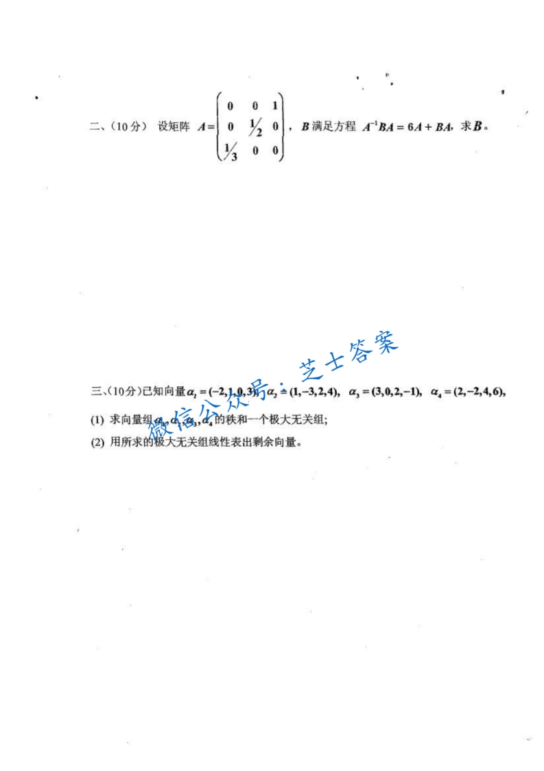北京理工大学《线性代数》2009-2010学年第二学期期末试卷B卷-学习资源网 - 分享优质学习资料