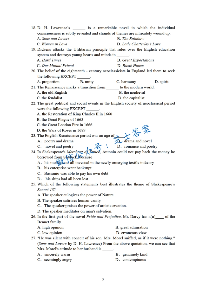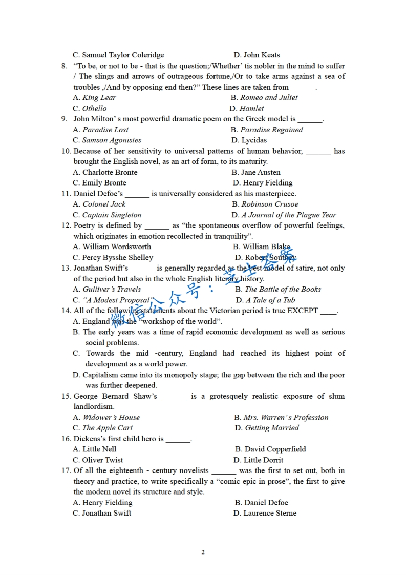 北京理工大学《英国文学》2015-2016学年第二学期期末试卷B卷猴哥6个月前发布关注私信1.17MB7页08511北京理工大学《英国文学》2015-2016学年第二学期期末试卷B卷此内容为付费资源,请付费后查看10积分年度会员免费月享会员免费登录购买付费资源已售 50 第1页 / 共7页 第2页 / 共7页 第3页 / 共7页 试读已结束,还剩4页,您可下载完整版后进行离线阅读 © 版权声明文章版权归作者所有,未经允许请勿转载。THE END《北京理工大学》期中期末历年真题期末试卷 喜欢就支持一下吧点赞11赞赏 分享QQ空间微博QQ好友海报分享复制链接收藏