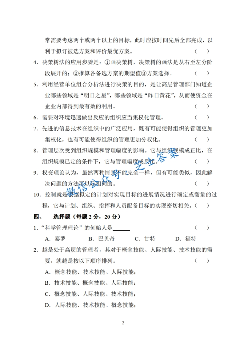 成都理工大学《管理学原理》2008-2009学年第一学期期末试卷A卷-学习资源网 - 分享优质学习资料