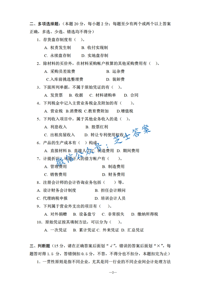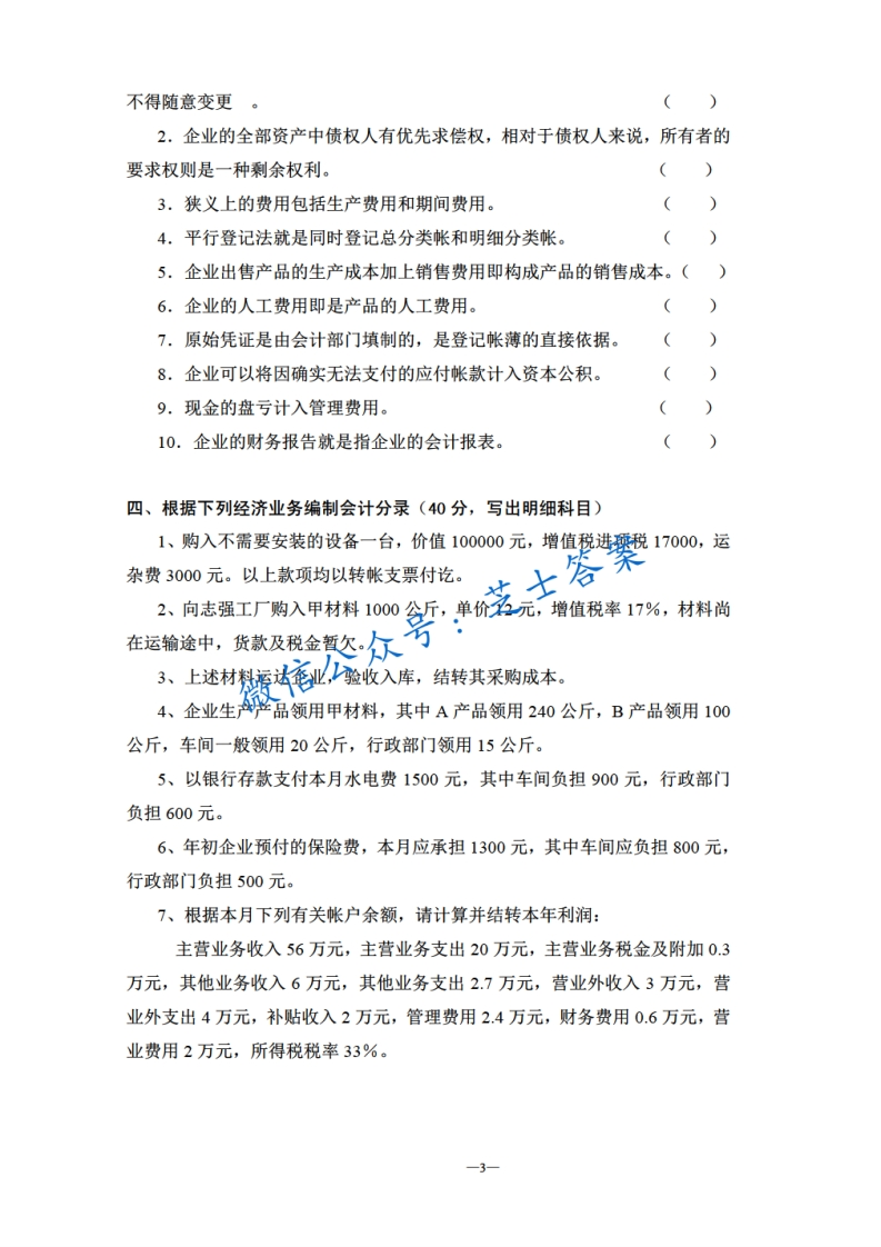 成都理工大学《会计学基础》2009-2010学年第二学期期末试卷A卷-学习资源网 - 分享优质学习资料