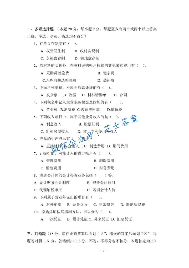 成都理工大学《会计学基础》2011-2012学年第二学期期末试卷-学习资源网 - 分享优质学习资料