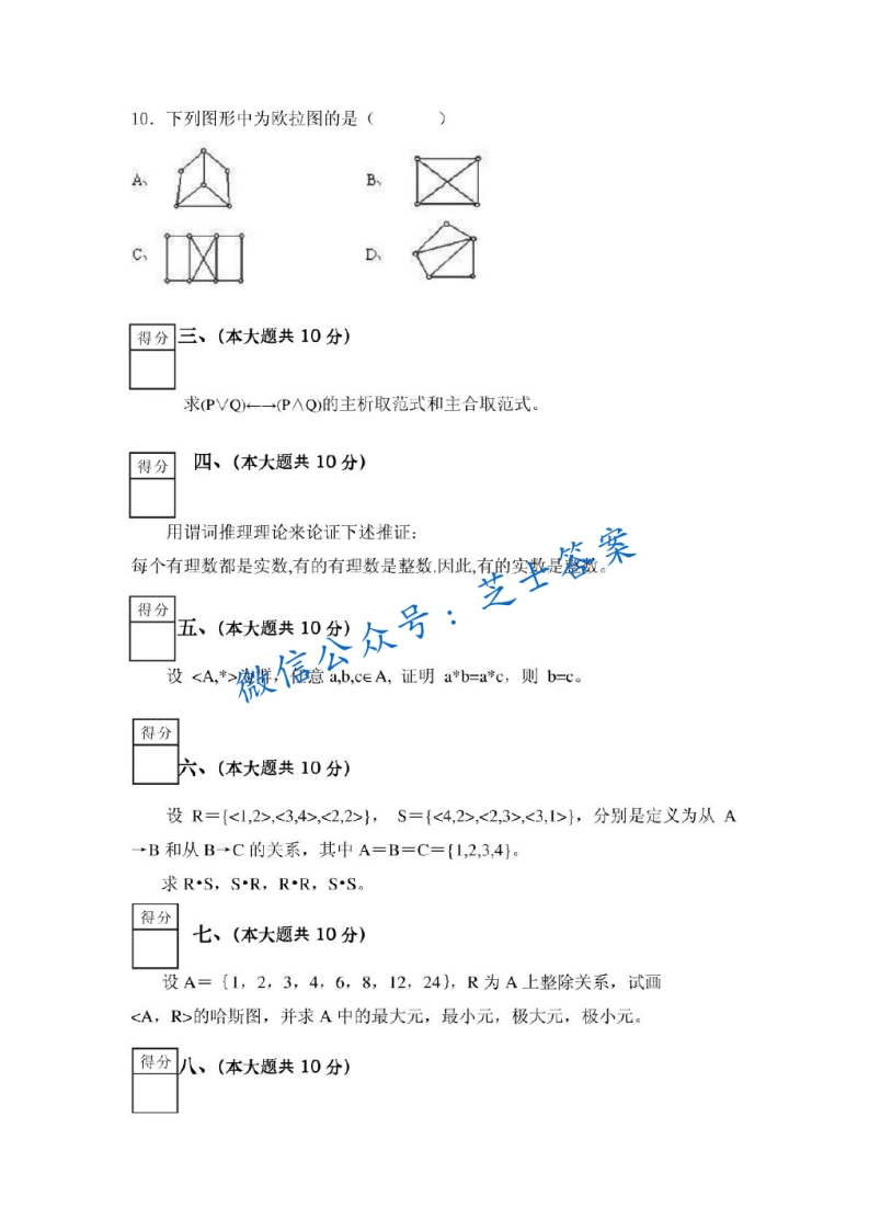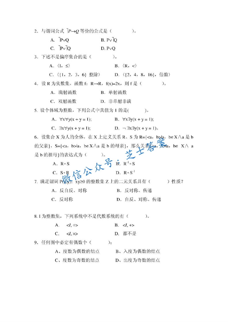 成都理工大学《离散数学》2007-2008学年第二学期期末试卷猴哥6个月前发布关注私信0.95MB4页07626成都理工大学《离散数学》2007-2008学年第二学期期末试卷此内容为付费资源,请付费后查看10积分年度会员免费月享会员免费登录购买付费资源已售 50 第1页 / 共4页 第2页 / 共4页 第3页 / 共4页 试读已结束,还剩1页,您可下载完整版后进行离线阅读 © 版权声明文章版权归作者所有,未经允许请勿转载。THE END《成都理工大学》期中期末历年真题期末试卷 喜欢就支持一下吧点赞26赞赏 分享QQ空间微博QQ好友海报分享复制链接收藏