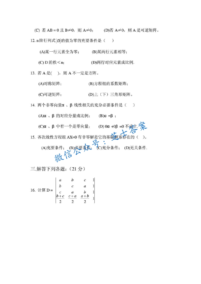 成都理工大学《线性代数》2006-2007学年第一学期期末试卷A卷猴哥6个月前发布关注私信1.36MB9页08946成都理工大学《线性代数》2006-2007学年第一学期期末试卷A卷此内容为付费资源,请付费后查看10积分年度会员免费月享会员免费登录购买付费资源已售 50 第1页 / 共9页 第2页 / 共9页 第3页 / 共9页 试读已结束,还剩6页,您可下载完整版后进行离线阅读 © 版权声明文章版权归作者所有,未经允许请勿转载。THE END《成都理工大学》期中期末历年真题期末试卷 喜欢就支持一下吧点赞46赞赏 分享QQ空间微博QQ好友海报分享复制链接收藏